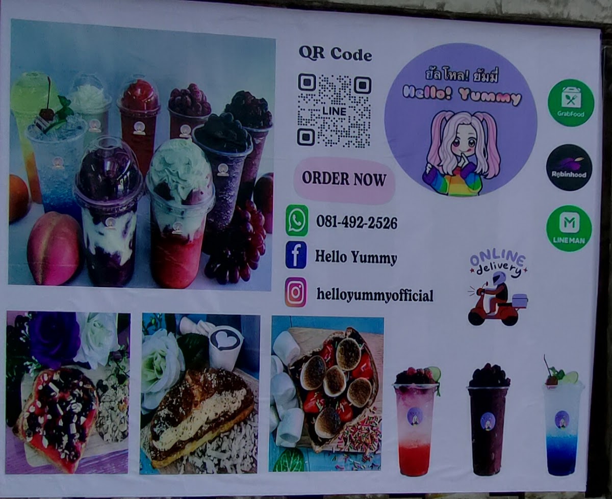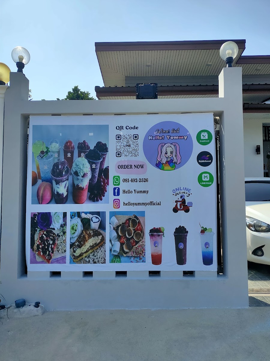 Welcome to Hello! Yummy (ฮัลโหล! ยัมมี่) พันท้ายนรสิงห์, a charming café located in the heart of Phanthai Norasing, Samut Sakhon. Here, delectable flavors meet a vibrant atmosphere, drawing in locals and visitors alike. The menu shines with an impressive array of beverages, notably their rich and creamy Mango Yogurt Smoothie, cherished by patrons for its intense flavor.